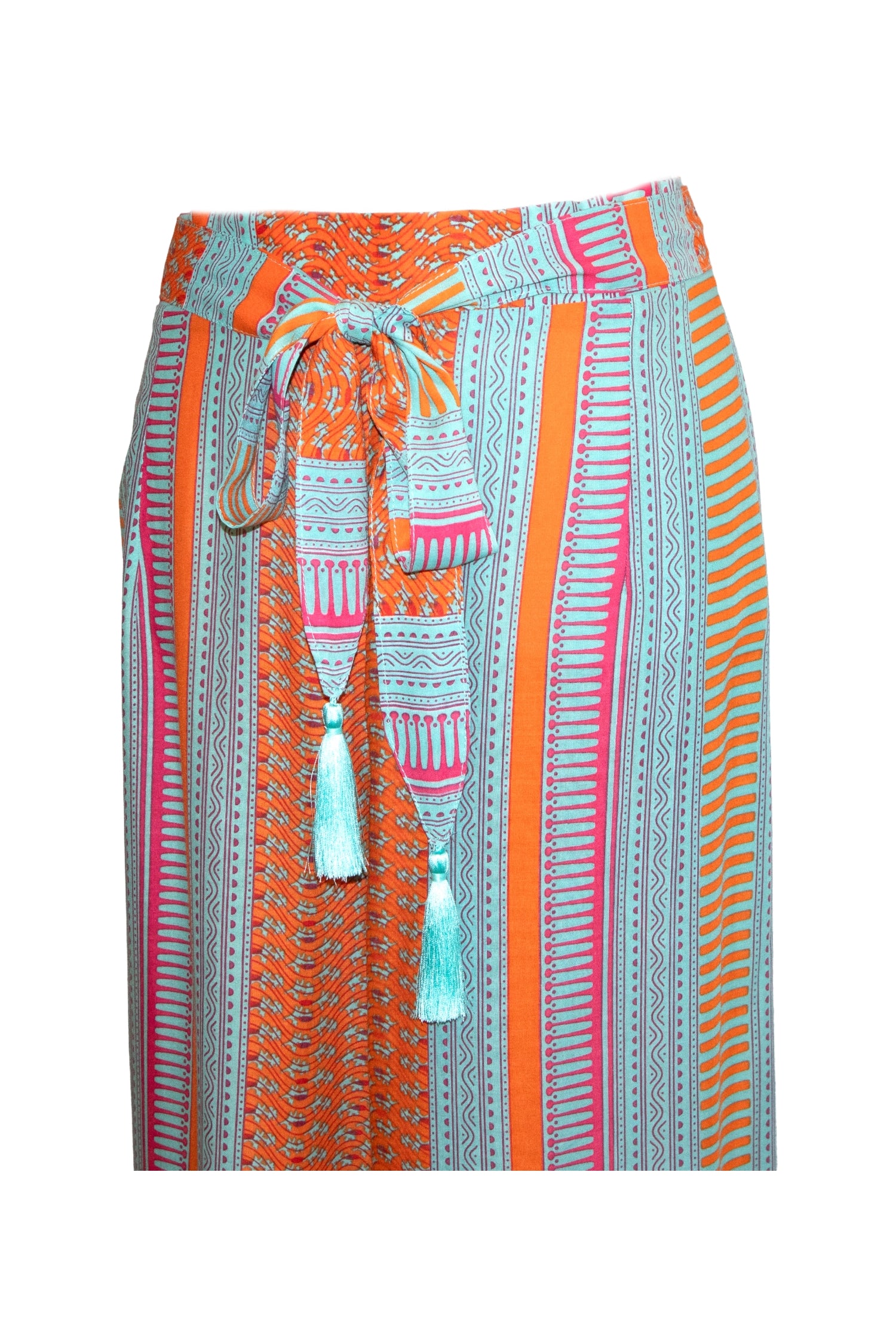 Anya Wide-Leg Tassel Trousers - Aqua & Orange