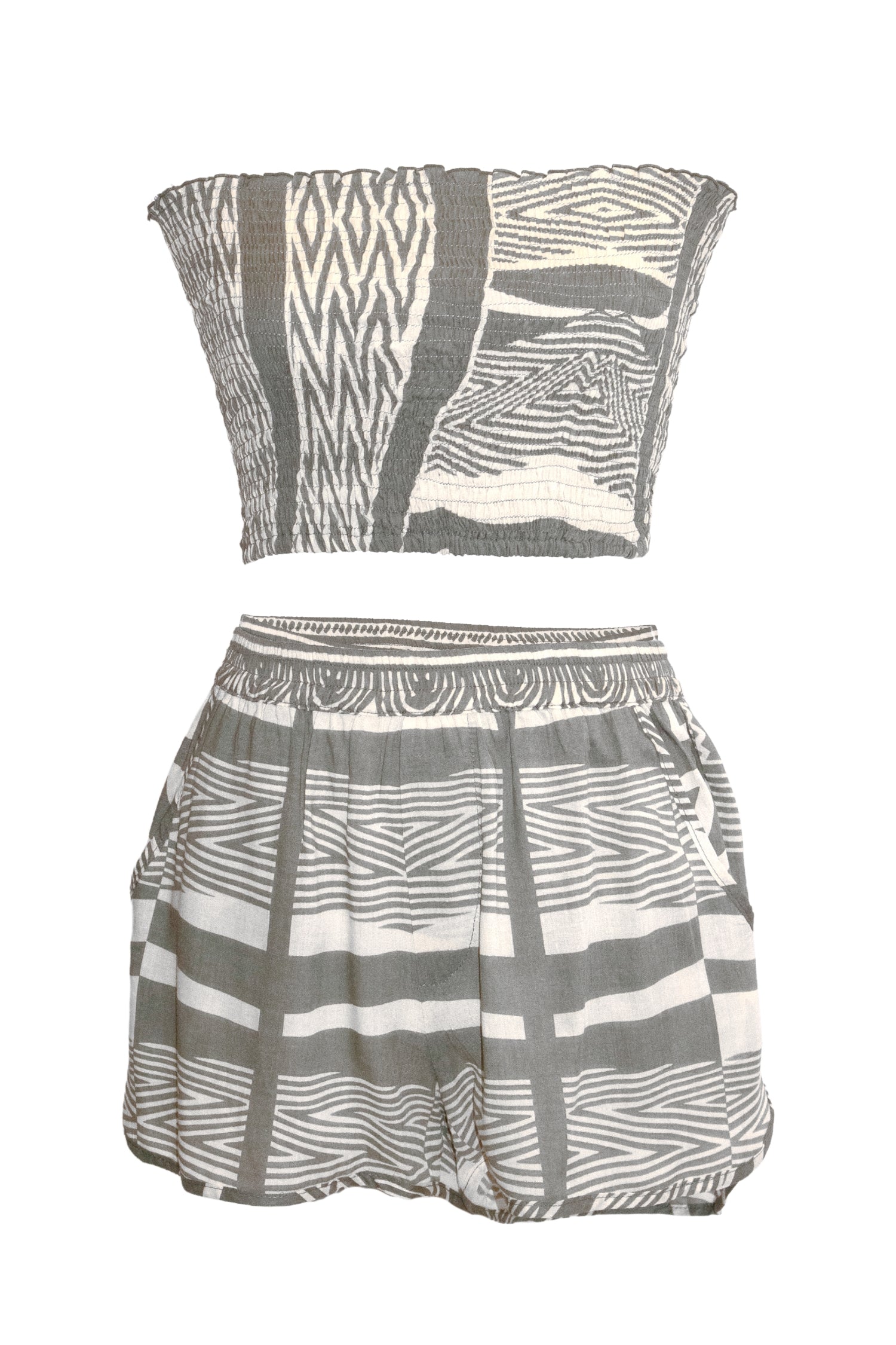 Kimani Shorts & Bandeau Top Set - Khaki & Cream