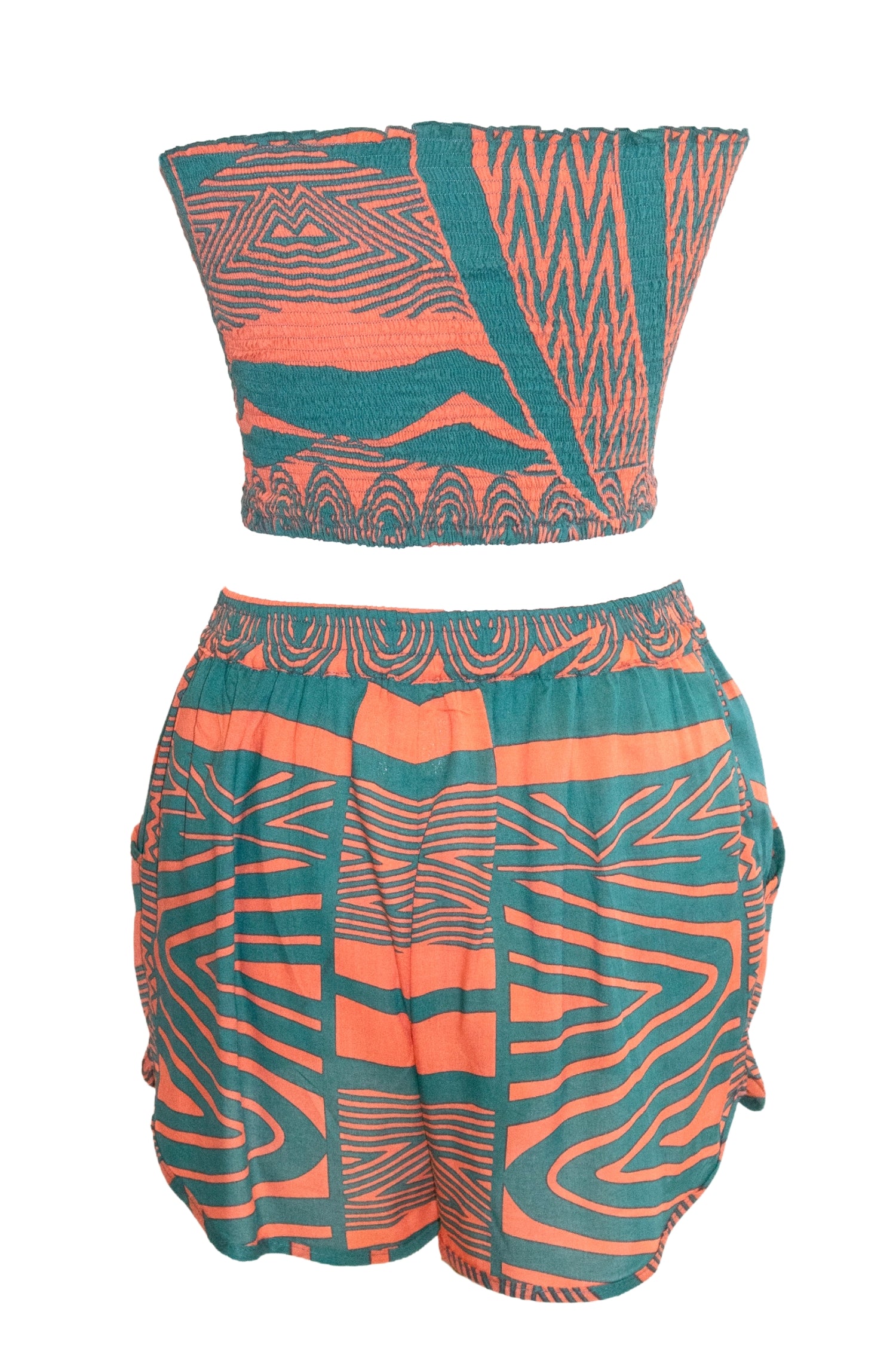 Kimani Shorts & Bandeau Top Set - Teal & Coral