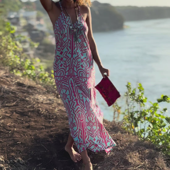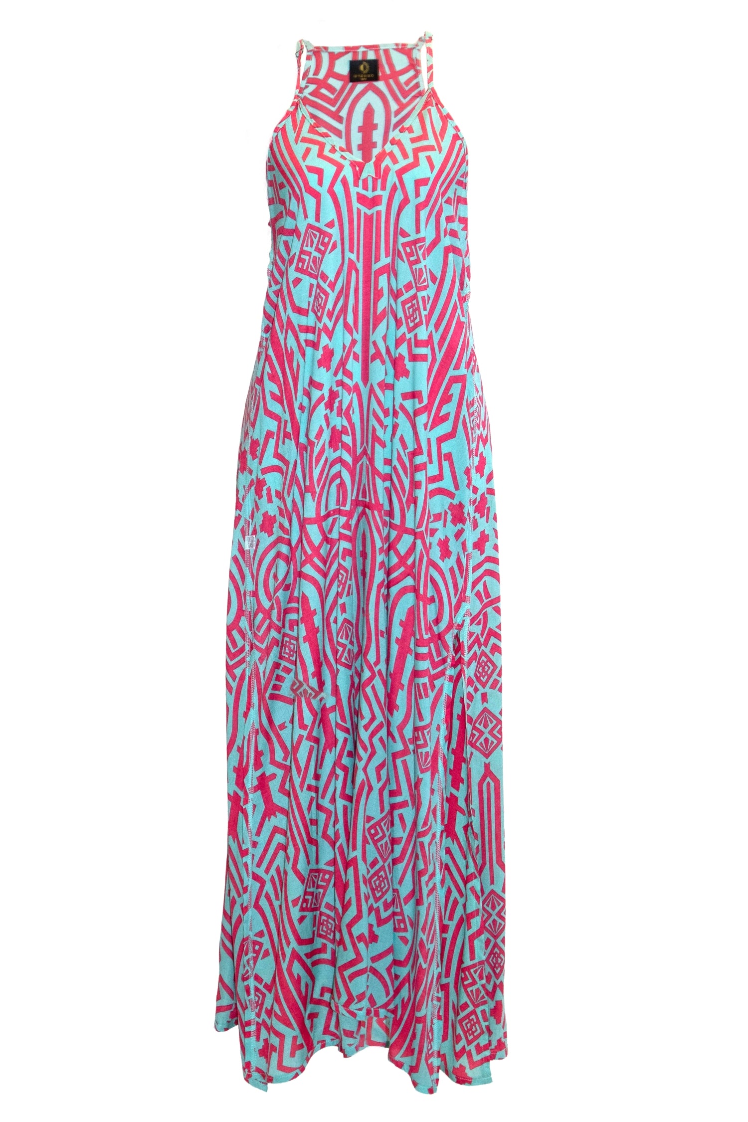 Zuri Side Split Maxi Dress - Aqua & Pink