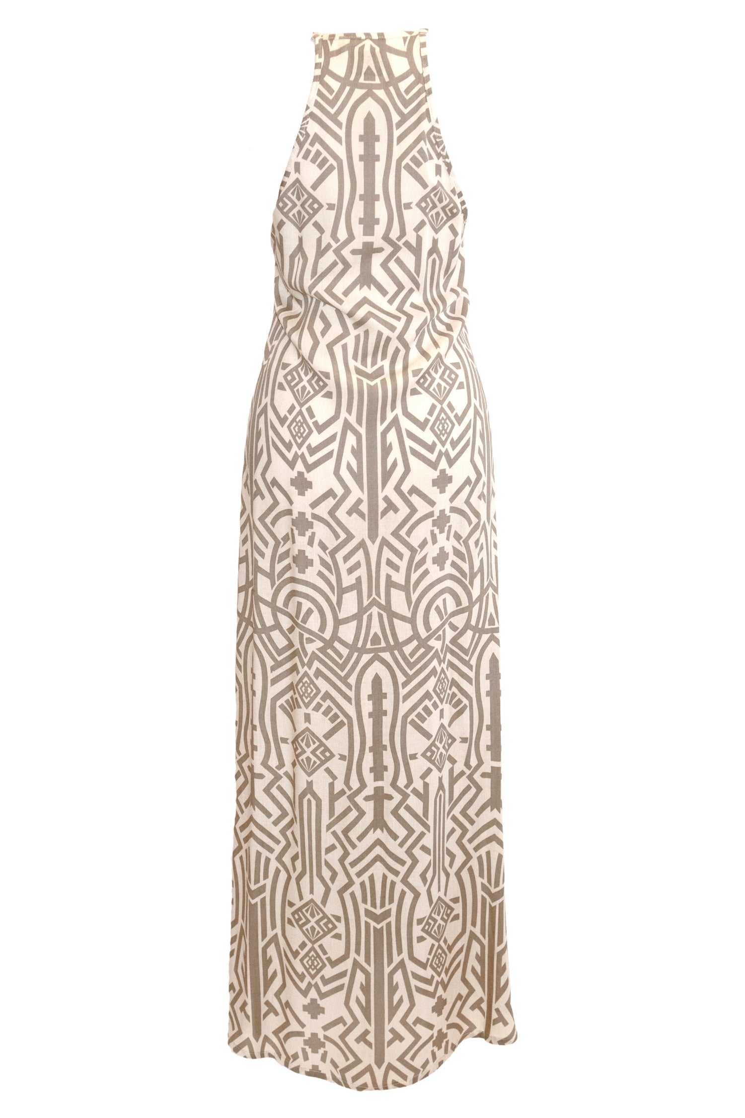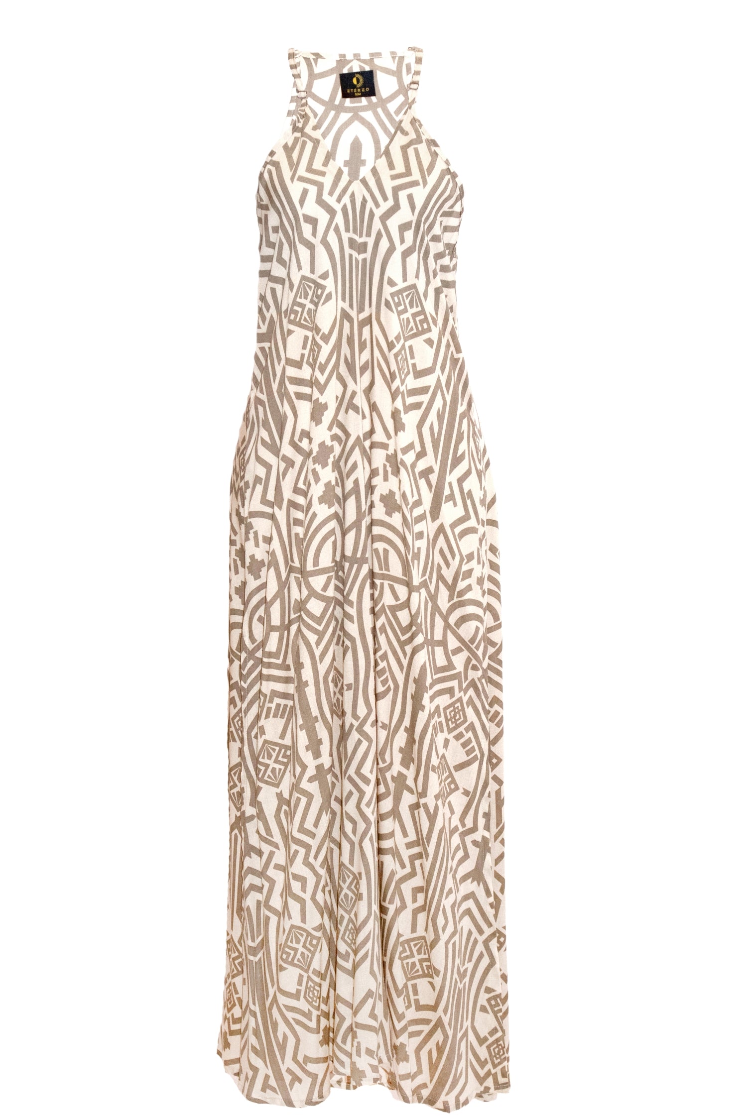 Zuri Side Split Maxi Dress - Khaki & Cream